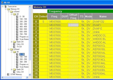 Here is a screenshot of a typical ICOM IC-92 programming session: